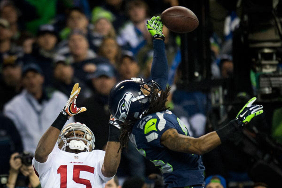 On the last meaningful play of a very meaningful game, Seahawk cornerback Richard Sherman made a play that perhaps no other human on the planet could have made, pirouetting in mid-air to swat away what seemed a sure game-winning touchdown. Game over. Seahawks win, 23-17, and advance to play the Denver Broncos in the Super Bowl Feb. 2.