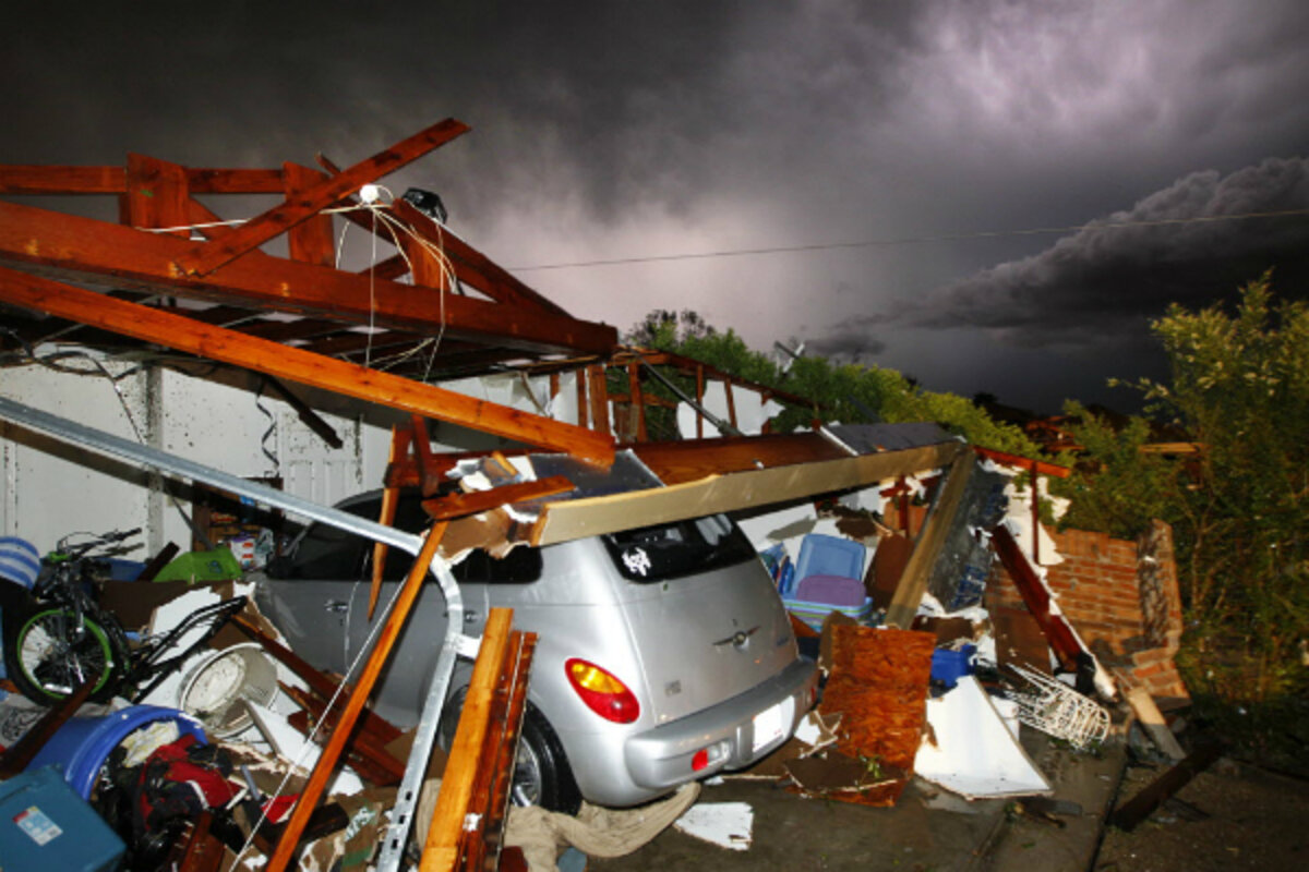 A cluster of thunderstorms produced as many as 10 tornadoes in the area, creating winds up to 100 m.p.h. and dropping grapefruit-size hail. Residents in Granbury, Texas, the hardest-hit area, reported that the violent storm flattened homes, threw cars and trailers, and stripped branches off trees.