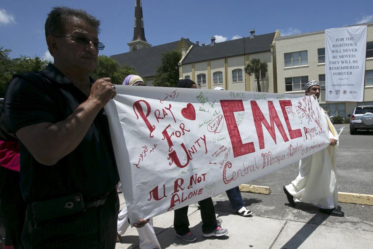 Later, to march across the city鈥檚 iconic Arthur Ravenel Jr. Bridge 鈥斅爊amed after a former state lawmaker and supporter of the Confederate flag 鈥 in a show of solidarity and healing. Beneath the two-mile span, boats gathered and blew their air horns in support, while cars honked as they passed on the bridge.