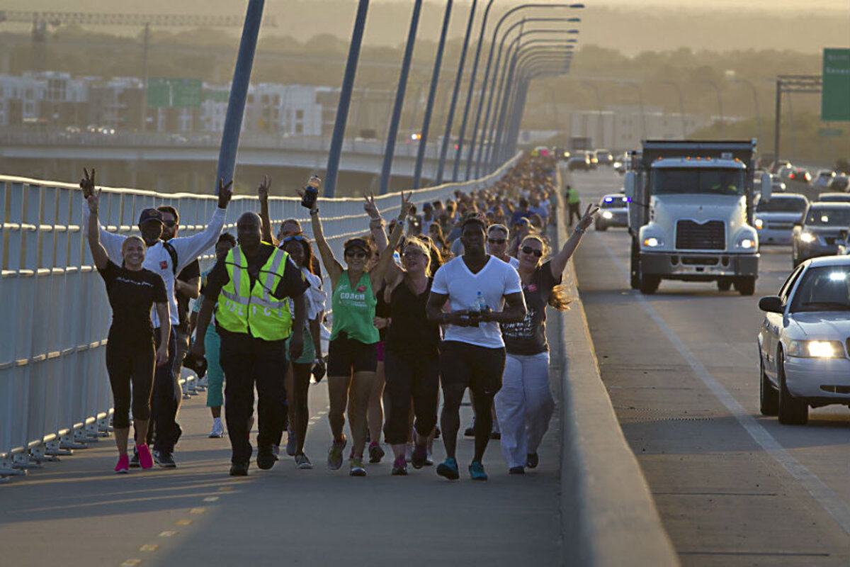 Police estimate that between 10,000 and 15,000 people from near and far gathered on the Arthur Ravenel Bridge, which spans the Cooper River and connects the city of Charleston to the suburb of Mount Pleasant, for the Bridge to Peace Unity Chain. Event organizers had expected about 3,000 people.听