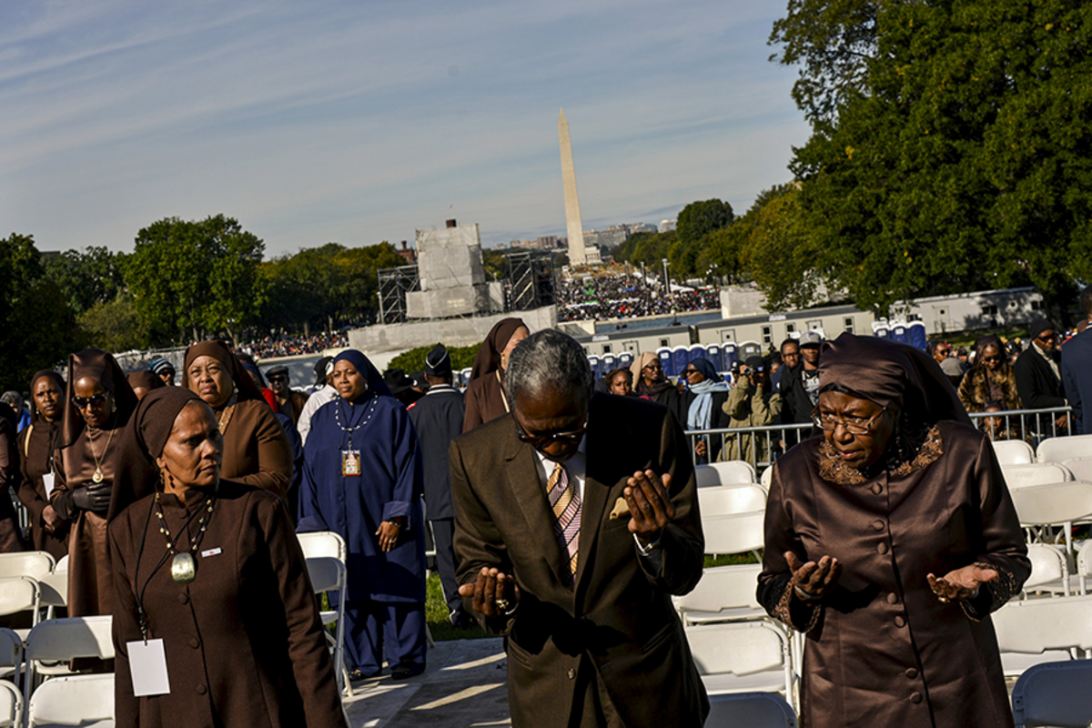 The gathering commemorated the 20th anniversary of the Million Man March, a large, peaceful rally of black men inspired by leaders in the black community to take responsibility for their lives, families, and communities.