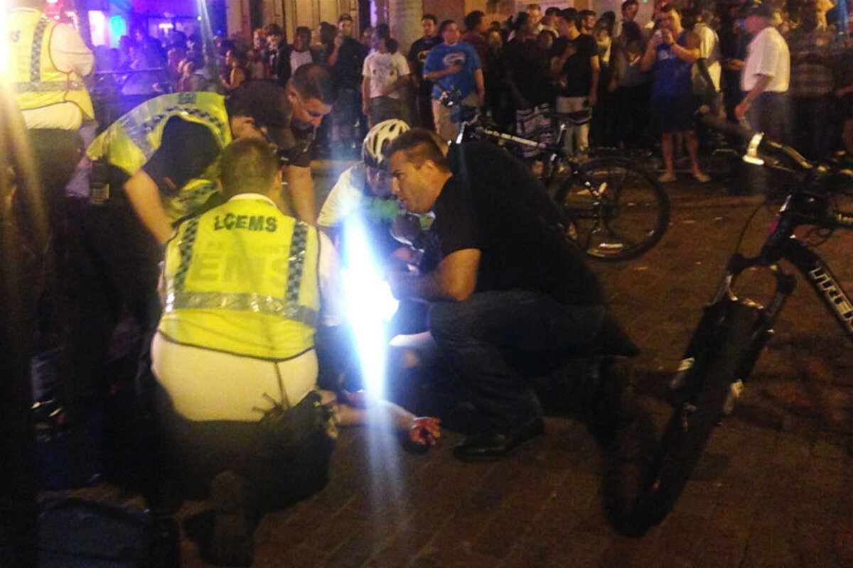 In video footage taken after police had arrived, the face-painted and costume clad festival goers fled through the downtown street in confusion and what reporters at the scene described as chaos. Many were capturing the unfolding disorder with their cell phone cameras.