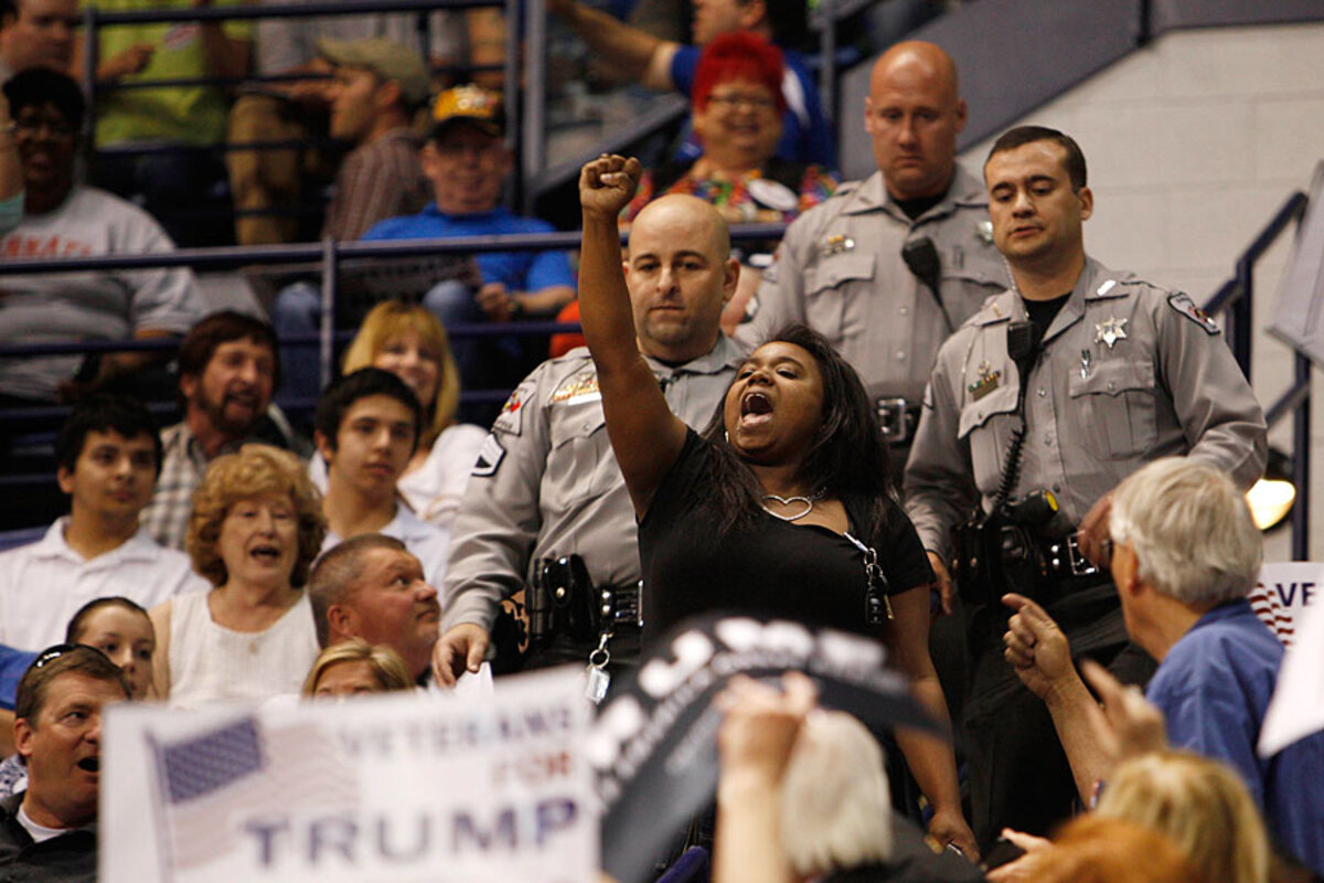 Rakeem Jones, a 26-year-old African American man, attended the rally with a 鈥渄iverse group鈥 of friends, including a woman, a gay man, and a Muslim. Although Mr. Jones says that his group did not begin the violence, his female friend began to yell during Trump鈥檚 speech.