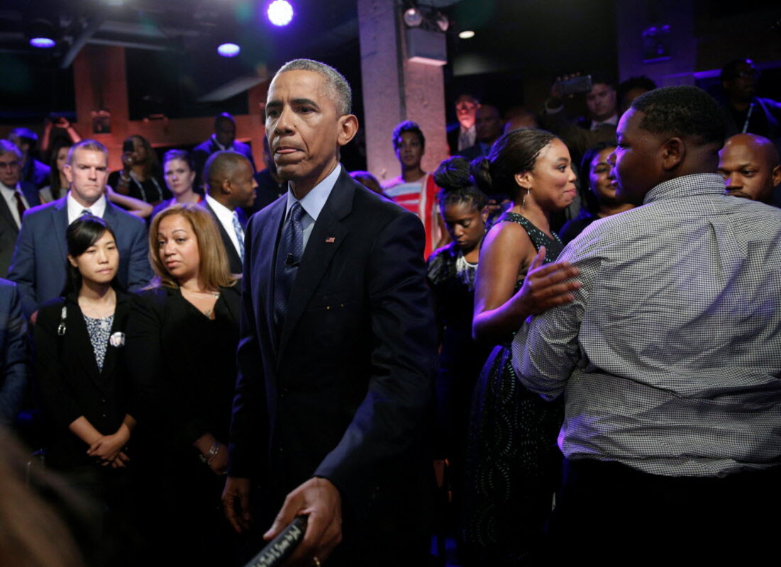 During the town hall,聽Obama聽addressed broad questions about race relations in questions from Cameron Sterling, whose father was killed in Baton Rouge, Louisiana, and Diamond Reynolds, whose fiance died in Minnesota.