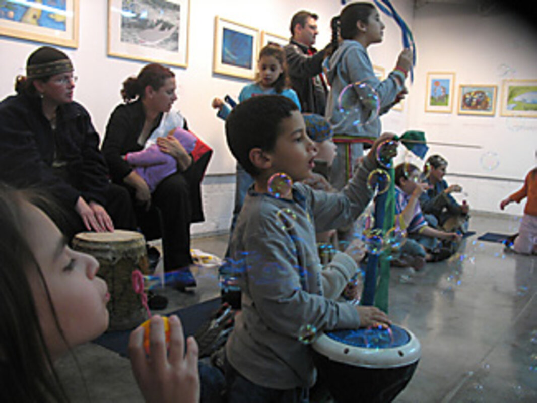 At the gallery over the weekend, a circle of preschoolers played the role of the ocean by blowing bubbles and waving blue and green streamers, while a pair of first-graders enacted the story of how two ocean adversaries become friends.