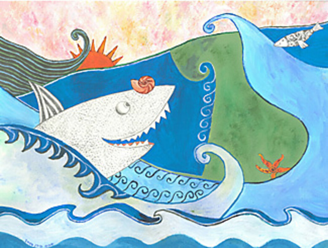 In Shalit's chance meeting between the shark and the fish, the two ocean dwellers abandon the roles of hunter and hunted in favor of hide and seek. But when their mothers are told about the new companionship, they reproach the children and forbid further meetings.