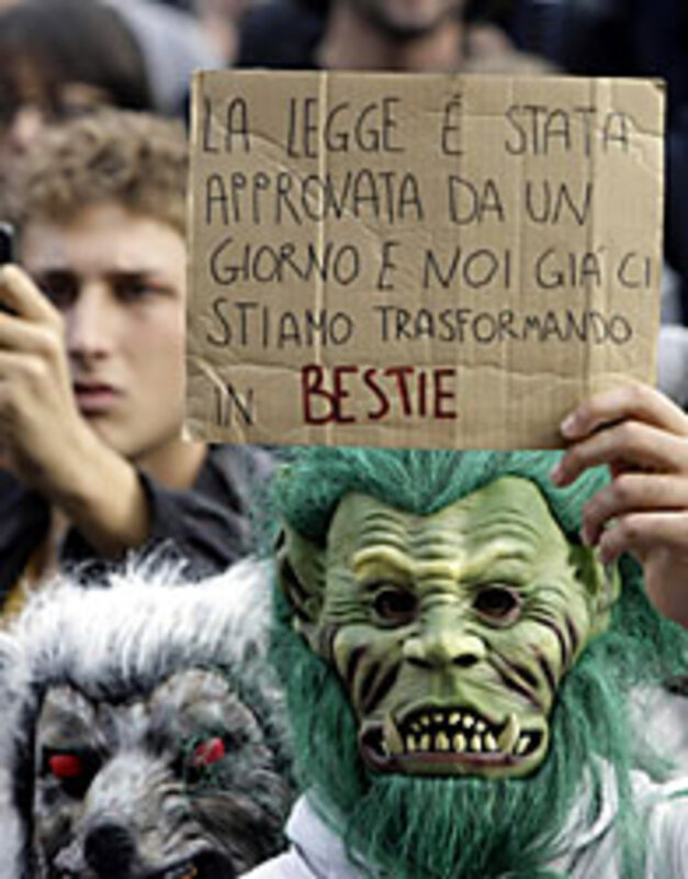Protesters also reject the budget cuts, saying that they will only result in the decline of public schools, forcing more students to attend private institutions. "Rather than a school reform, this seems like an agenda for privatization," says Nicoletta Eufemi, a student protester in Milan.