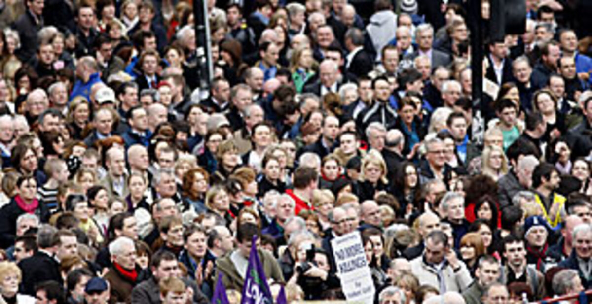 "The horror and shock shown by the people of Northern Ireland in response to the repugnant murders ... must be expressed publicly," says Peter Bunting, general secretary of the Irish Congress of Trade Unions, which organized the vigil. "Those who long for a society at peace with itself and with others can express their solidarity with that most dignified form of protest: a wall of human silence."