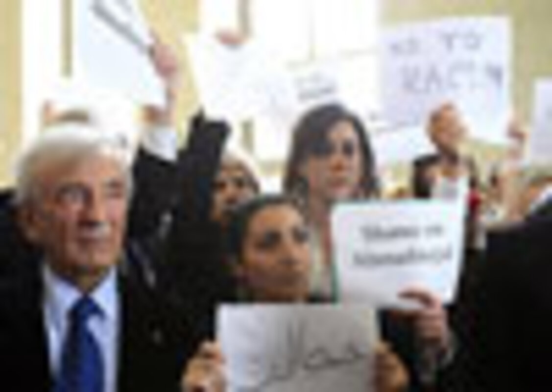 "Under the pretext of Jewish suffering, they have helped bring to power the most oppressive, racist regime in Palestine," he said, to loud applause from Iranian activists in the gallery and pockets of headscarved Muslim women on the floor. "They have always been silent about their crimes."