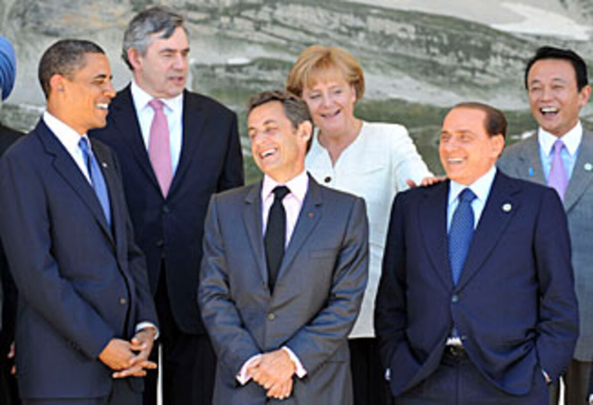 The G-8 "was a giant leap for the US, and one small step for mankind," says Bastian Hermisson of the Heinrich B枚ll Foundation in Germany, a think tank aligned with the Green Party, in describing US climate policy shift from the Bush to Obama administrations. At the G-8 last year in Japan, after many years of disagreement with global warming initiatives, dating to the Kyoto Protocols, and with much consternation in European states 鈥 the Bush White House agreed on a 50 percent reduction in gases by 2050. [EDITOR'S NOTE: In Japan last year, the US did not agree to a specific base year from which to make a 50 percent reduction.]