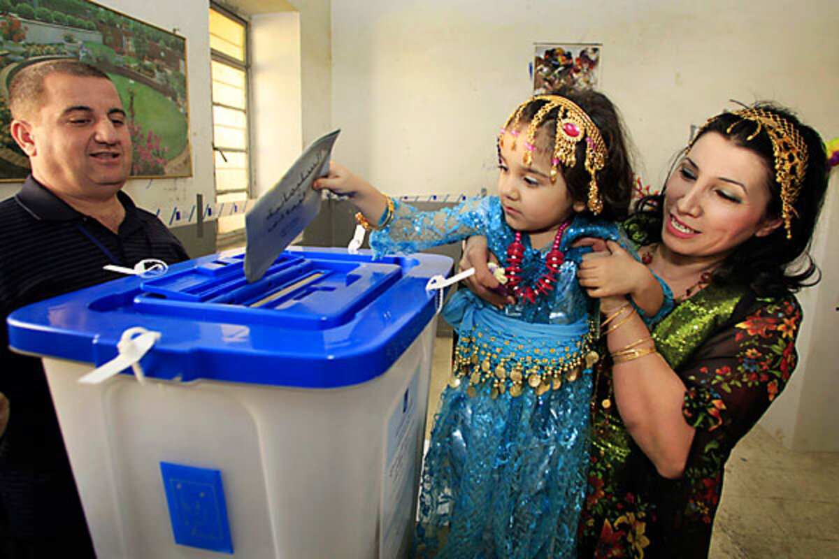 Several residents brought their elderly parents and young children to polling sites, dressing up as if for a holiday. Children at polling centers were allowed to dip their fingers into the now-iconic purple ink that's used to prevent Iraqis from attempting to vote more than once.