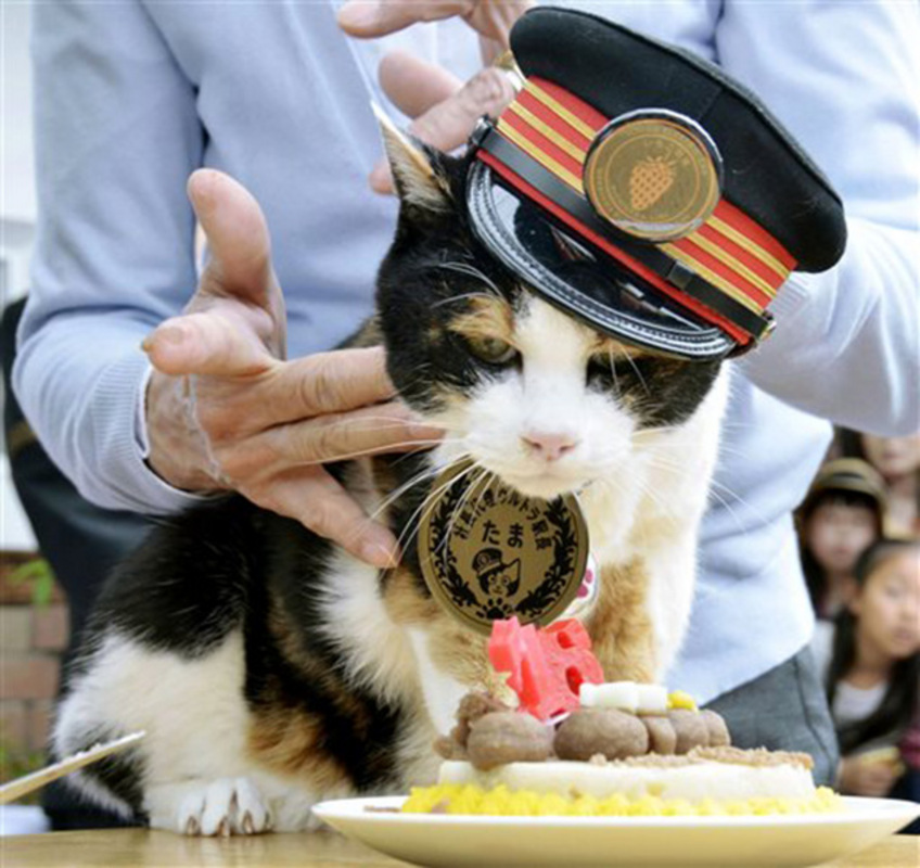 The calico cat was appointed stationmaster at the Kishi station in western Japan in 2007. Donning her custom-made stationmaster's cap, Tama quietly sat at the ticket gate welcoming and seeing off passengers. The cat quickly attracted tourists and became world-famous, contributing to the railway company and local economy.