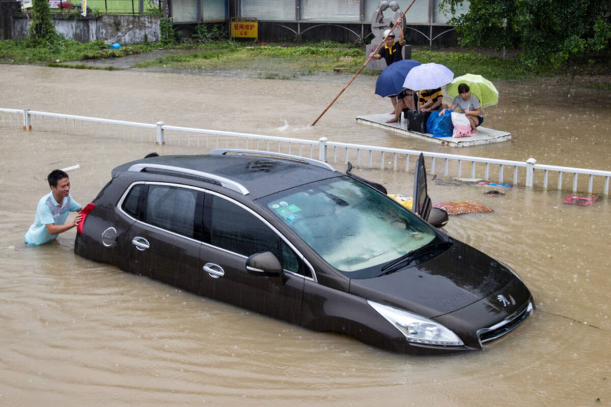 State broadcaster showed people wading in knee-deep water in the provincial capital of Fuzhou and said that some streets were submerged under 80 centimeters (30 inches).