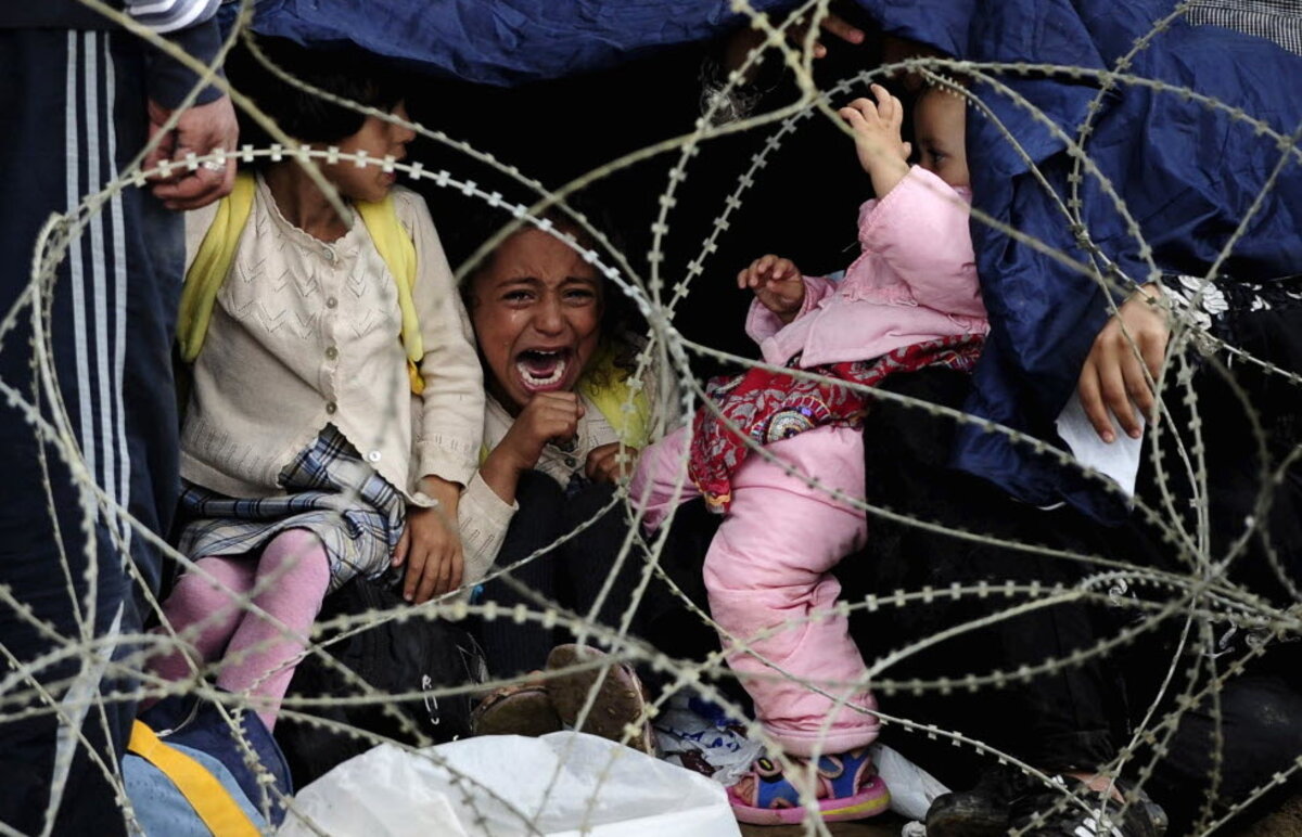 Those who could not cross spent the rainy and chilly night in the open with little food. They massed close to a razor wire separating them from machine-gun toting Macedonian policemen. Some raised their babies above their heads to try to persuade the policemen to let them through.