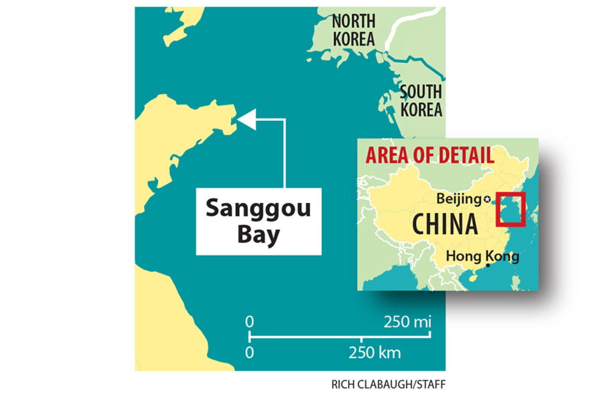 Sanggou Bay looks like a place where the pointillism movement has been unleashed on an ocean canvas. All across the harbor on China鈥檚 northeastern coast, thousands of tiny buoys 鈥 appearing as black dots 鈥 stretch across the briny landscape in unending rows and swirling patterns. They are broken only by small boats hauling an armada of rafts through the murky waters.聽