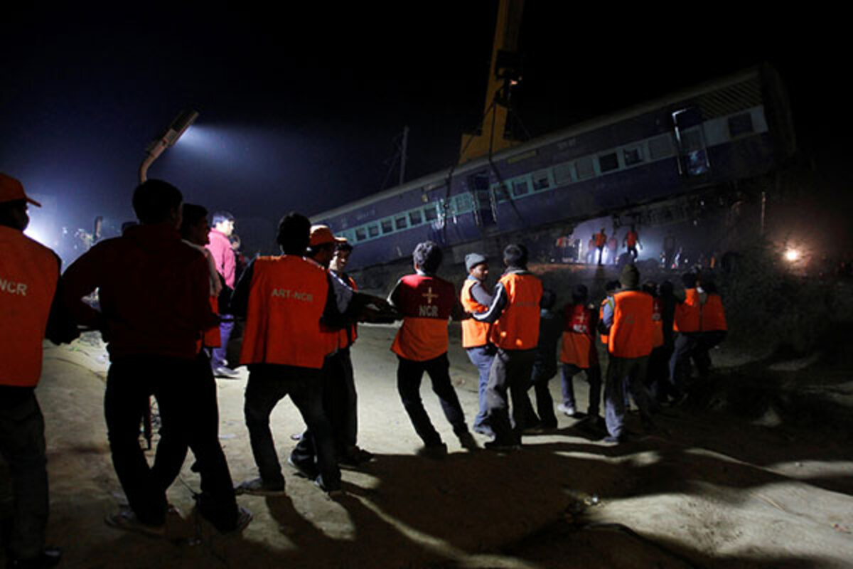 Rescue workers, soldiers and members of India's disaster management force reached Pukhrayan within an hour of the derailment and began pulling out people trapped in the overturned coaches.