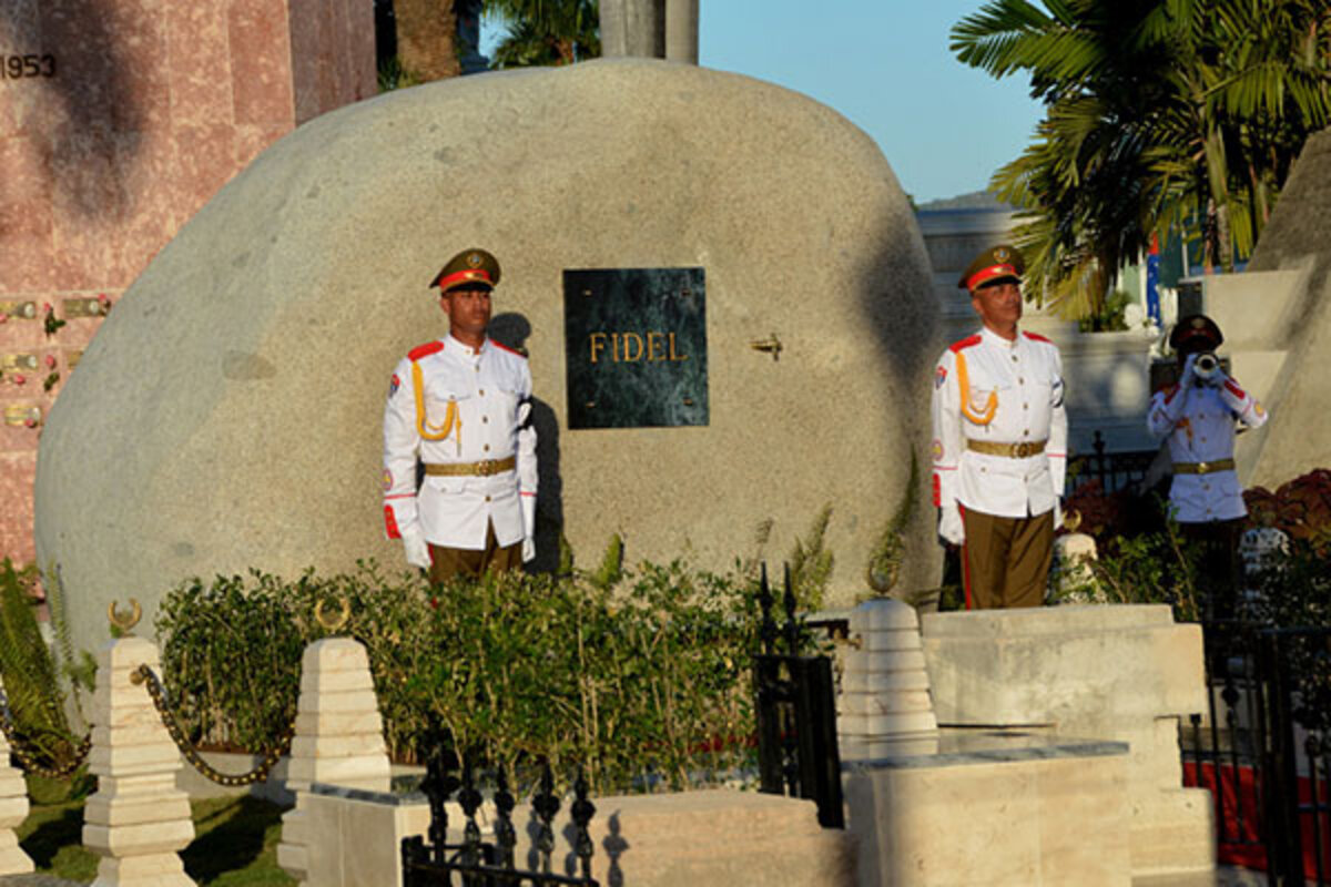 An honor guard of a dozen uniformed soldiers stood in front of Castro's tomb.