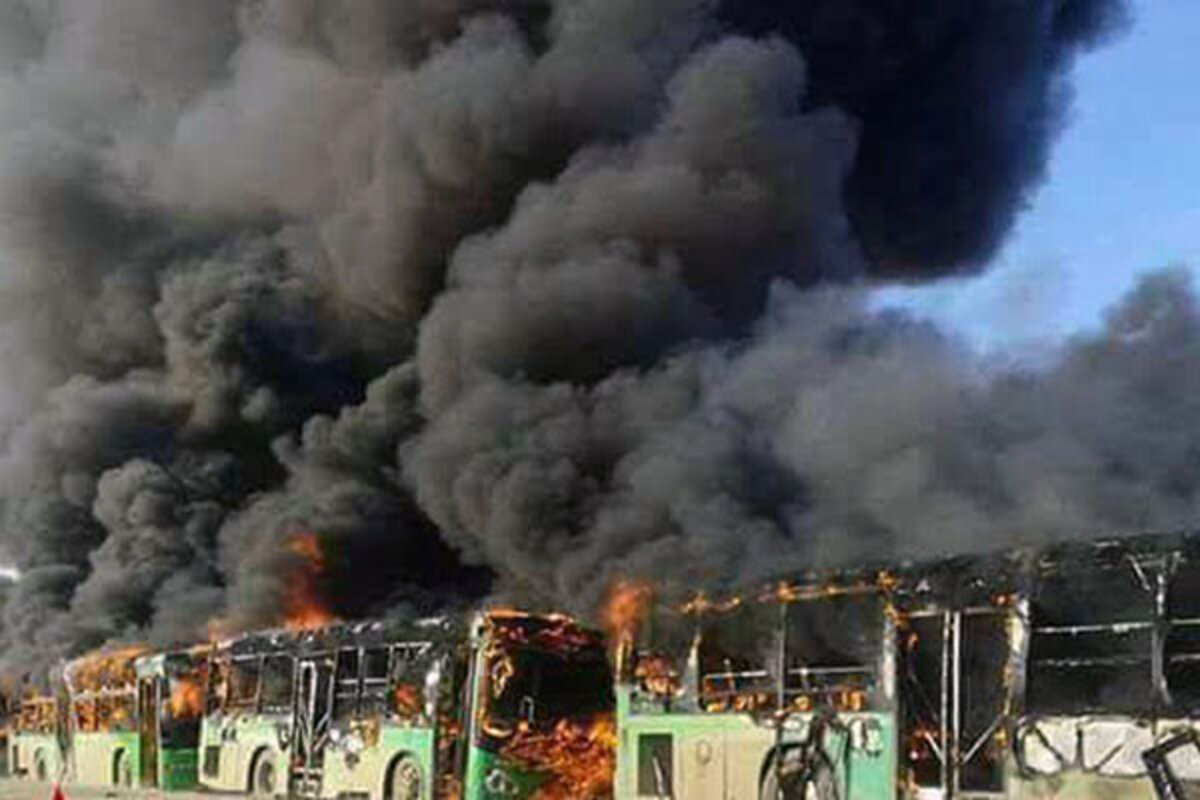 Hezbollah, the Lebanese militant group fighting alongside Syria's government, said the buses were burned during fighting between Fatah al-Sham and a rebel group that supported the evacuations.