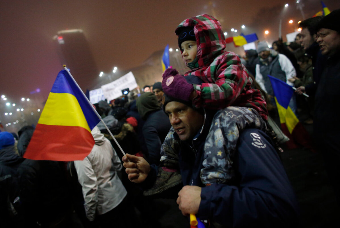 Although the government repealed the measure Sunday, the unrest its move sparked continued Monday. Thousands of people gathered outside the government offices for the seventh consecutive evening, yelling "Resignation!" and waving Romanian flags.