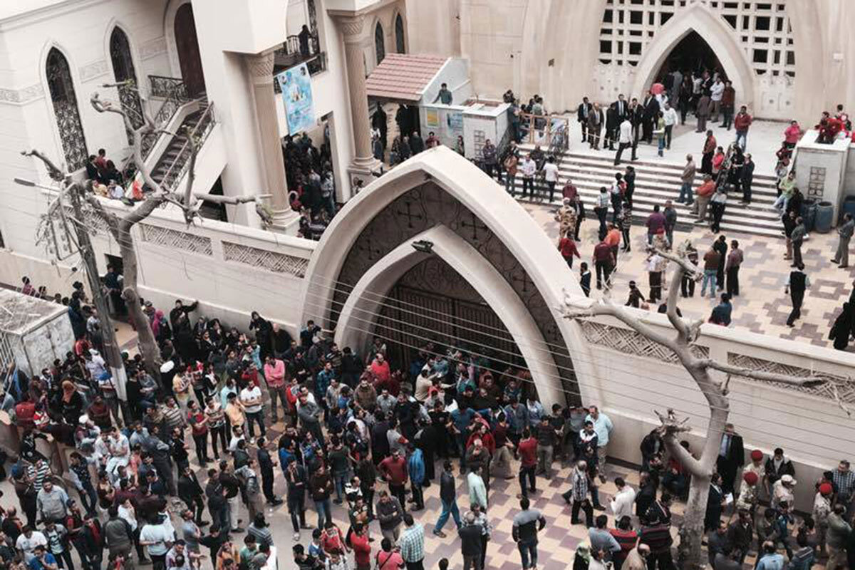 CBC TV showed footage from inside the church in Tanta, where people gathered around what appeared to be lifeless, bloody bodies covered with papers.