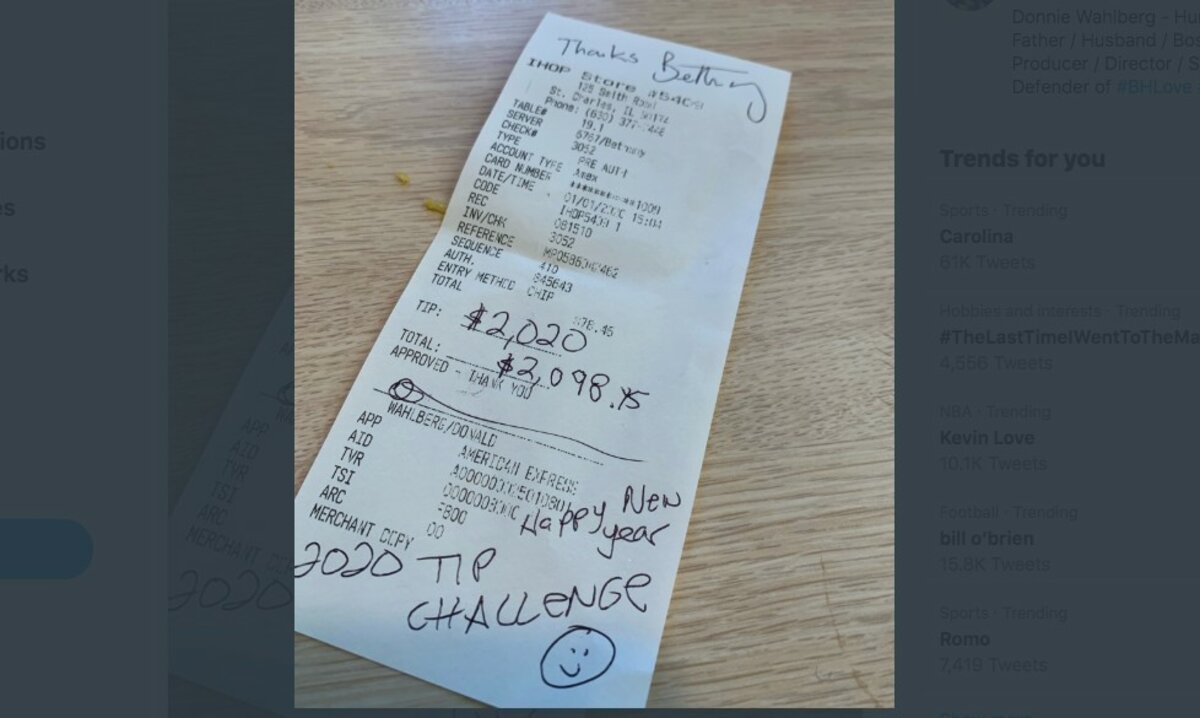 鈥淗appy New Year,鈥 a firm hand had scrawled on the receipt, along with the words, 鈥2020 Tip Challenge.鈥