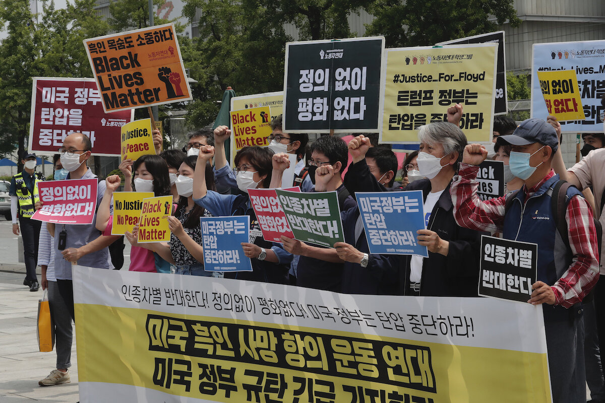 In South Korea, dozens gathered in front of the U.S. Embassy to condemn what they described as police brutality toward protesters in the U.S. They called for South Korea鈥檚 government to speak against the 鈥渞acial discrimination and state violence鈥 of its ally and pushed for an anti-discrimination law to improve the lives of migrant workers, undocumented foreigners, and other minorities.