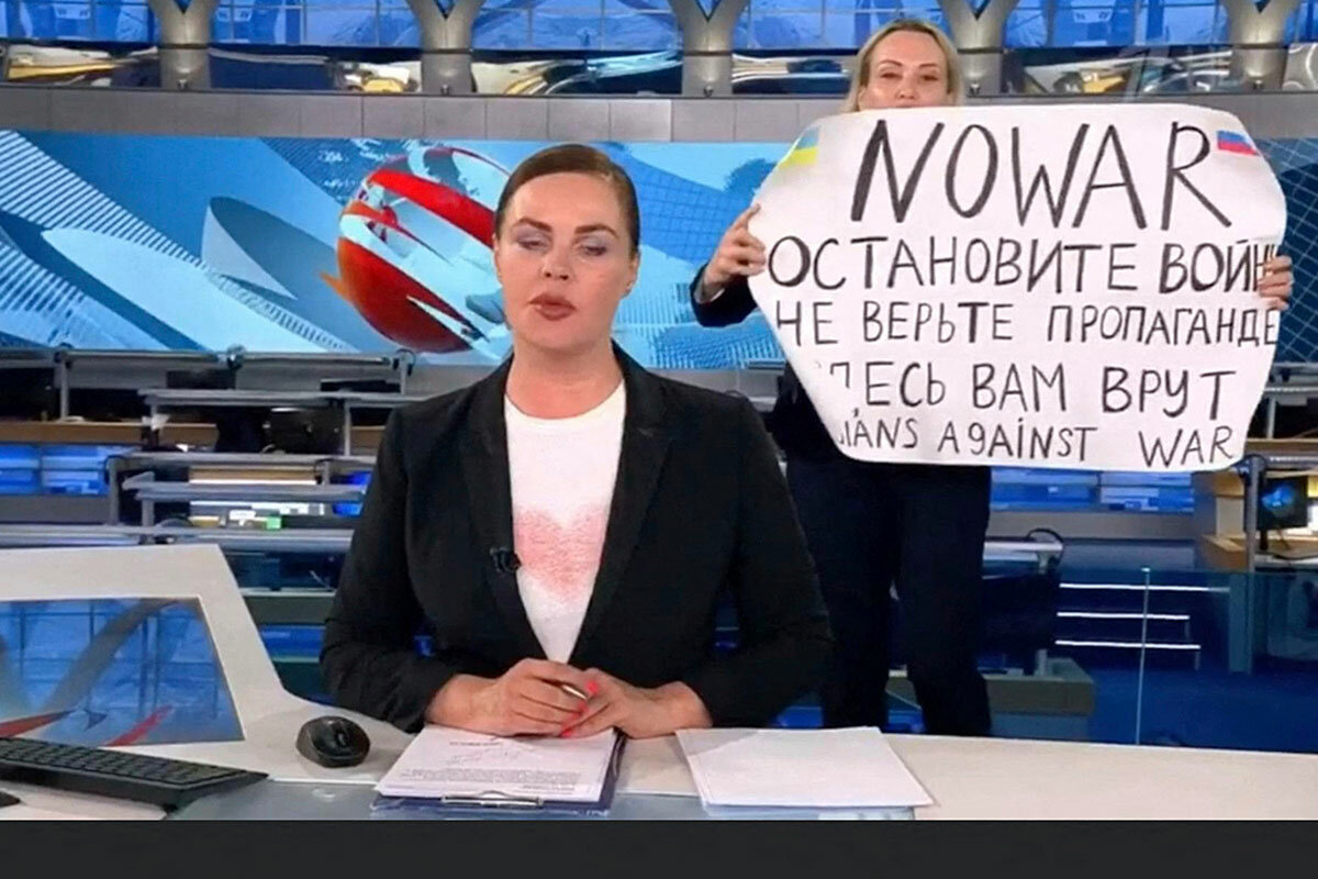 That kind of internal reckoning has also led others to speak out over the past year when silence would have been easier, people like Moscow television producer Marina Ovsyannikova. A few weeks into President Vladimir Putin鈥檚 war on Ukraine, she strode onto the set of Russia鈥檚 main nightly news broadcast holding a sign saying: 鈥淣o war! Don鈥檛 believe the propaganda. They鈥檙e lying to you here.鈥