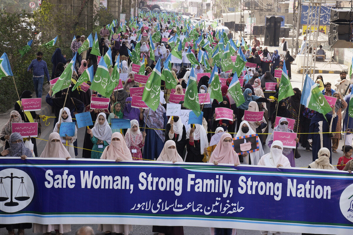 Women gathered in Pakistan鈥檚 major cities to march amid tight security. Organizers said the demonstrations were aimed at seeking rights guaranteed by the constitution. Some conservative groups last year threatened to stop similar marches by force.