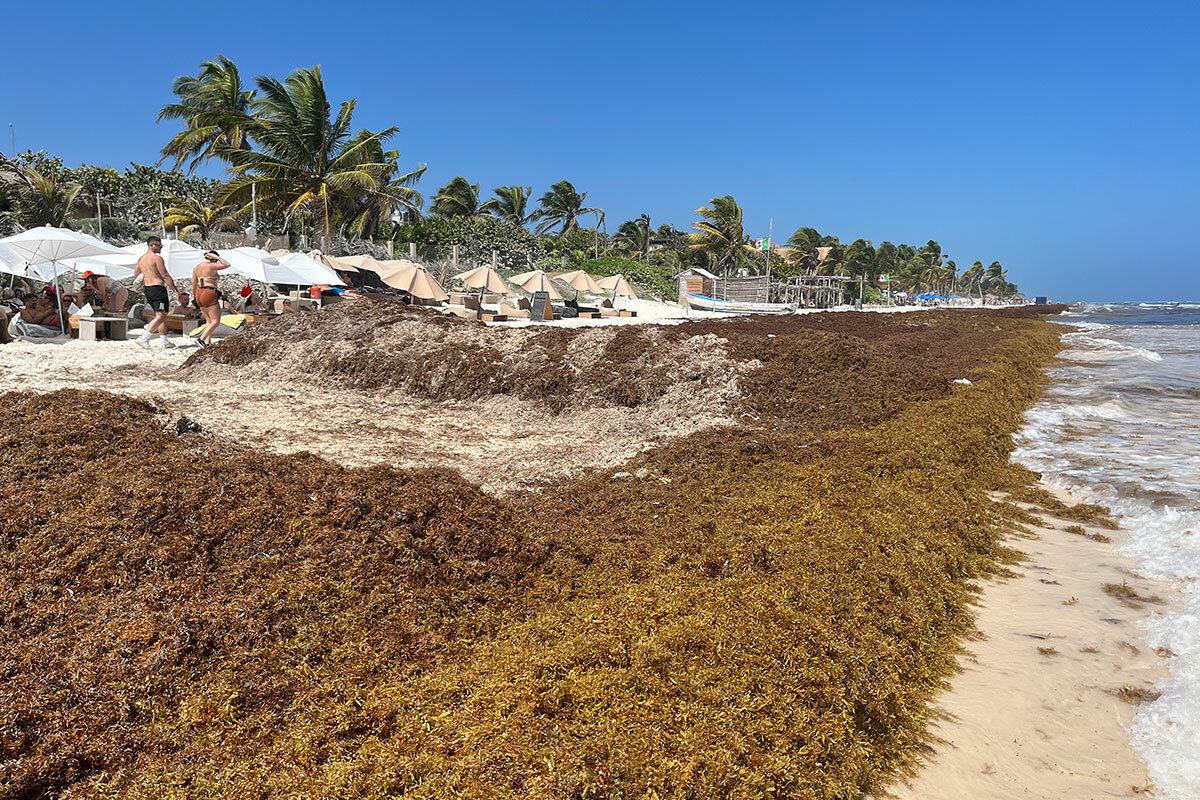 It鈥檚 hard to escape sargassum in Mexico鈥檚 Yucat谩n. In early March, beachgoers navigated thigh-high mounds of algae waiting for removal in Tulum, while travelers arriving in Canc煤n discussed excursions to cenotes, natural swimming holes, instead of the ocean. Radio programs buzzed about the record arrival of seaweed washing ashore: 鈥淒on鈥檛 forget, you can still enjoy the beach breeze, even if you can鈥檛 get in the water,鈥 one radio announcer encouraged.
