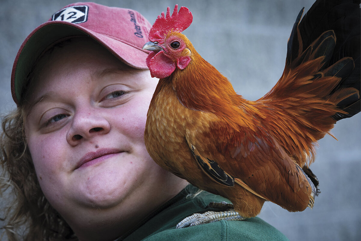 His handler, Taylor Nixon, unclips Moose from his stable and leads him out into a passageway to meet some visitors. But then, unaccountably, Ms. Nixon attempts to lead him back into his enclosure, without first taking him out into the pasture for a nice stroll.