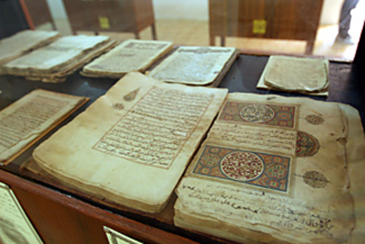 Abdel Kader Haidara carefully picks up one of a dozen small leather-bound books lying on his desk and leafs through the age-weathered pages covered in Arabic calligraphy.