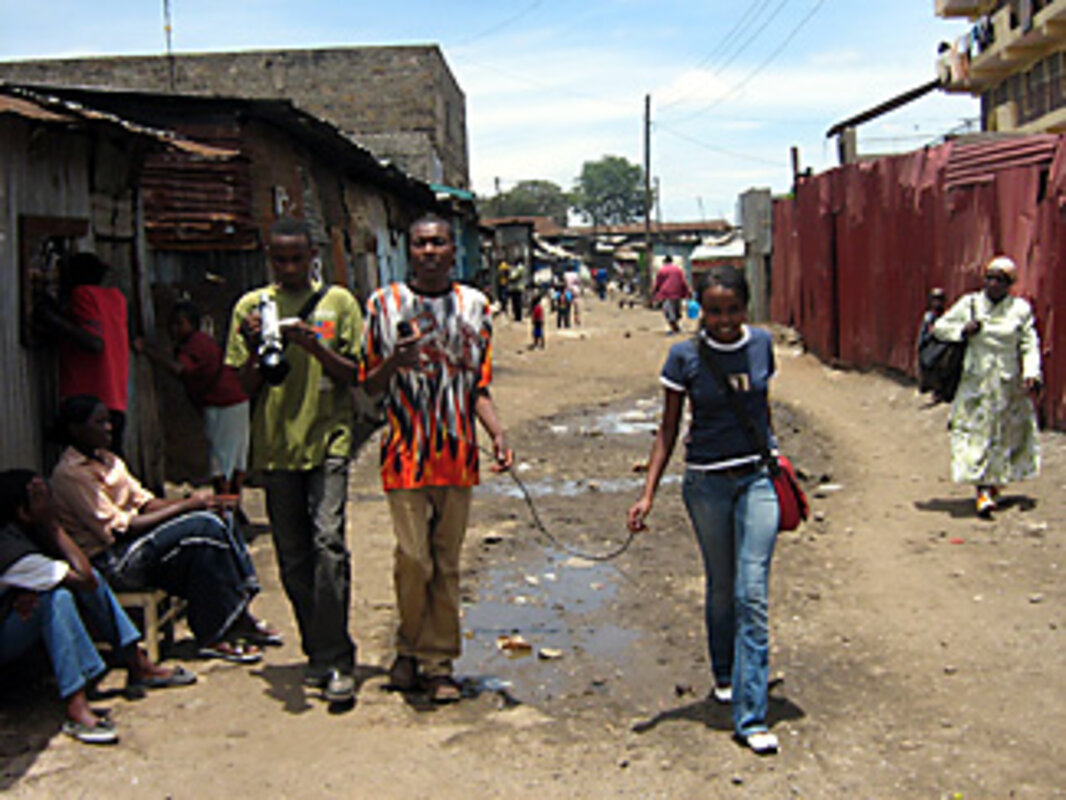 The three-person crew of Slum TV set out under the hot noon sun, slinging a video camera and microphone through the crooked labyrinth of iron-sided shacks, rickety-stick markets, and open sewers that is their home, Mathare.