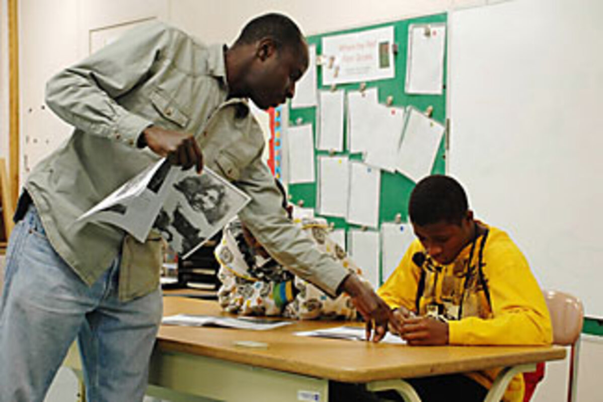 In Worcester, Mass., Abu Assal's home for almost three years now, he introduces himself to a classroom of African teens, refugees from conflicts across Africa. Though many have lived in the US long enough to adopt the culture, they're still behind in school. So Abu Assal and other members of the African Community Education Program spend Saturdays tutoring these kids.