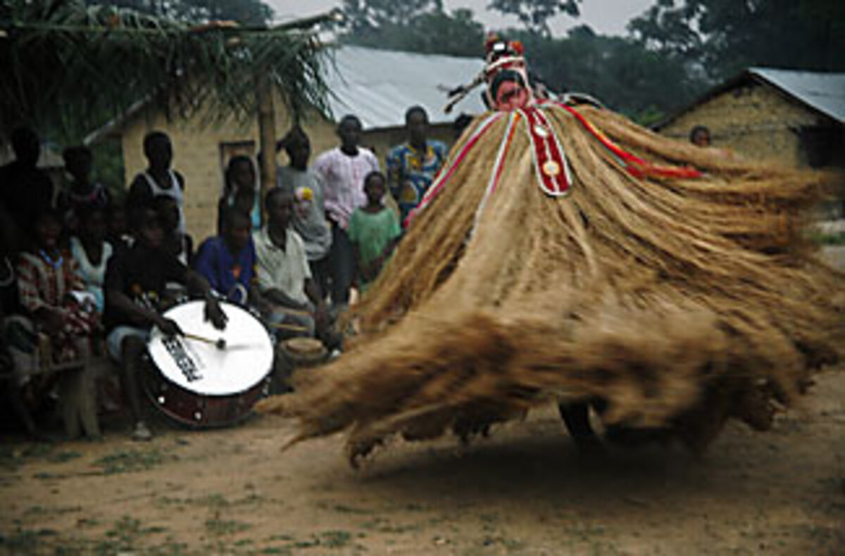 But today, women dress in freshly laundered wrappers ablaze in color; men wear regal Muslim gowns or their best T-shirts. An anonymous few sweat beneath layers of straw and fabric, in costumes like something from Sesame Street: They are 鈥 or are dressed as, depending upon your belief system 鈥 the village's local devils, whose appearance signals celebration; their rapid footwork leads a dancing procession to the village center.