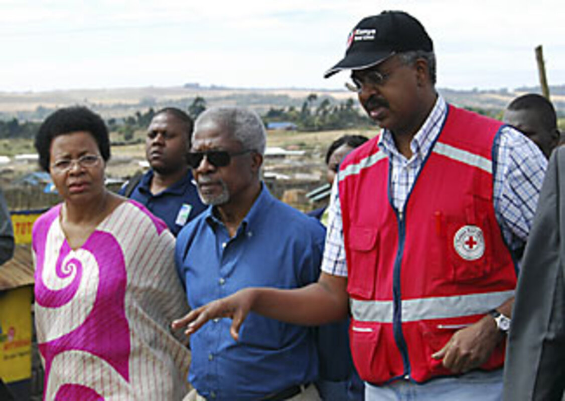 Annan's arrival doesn't stop the violence right away. But the lifelong diplomat wastes little time. Within two days, he convinces the two sides to negotiate with each other with no preconditions. On the evening of Jan. 24, on national TV, millions of Kenyans see the two opponents, President Kibaki and Raila Odinga, shaking hands and sipping tea.