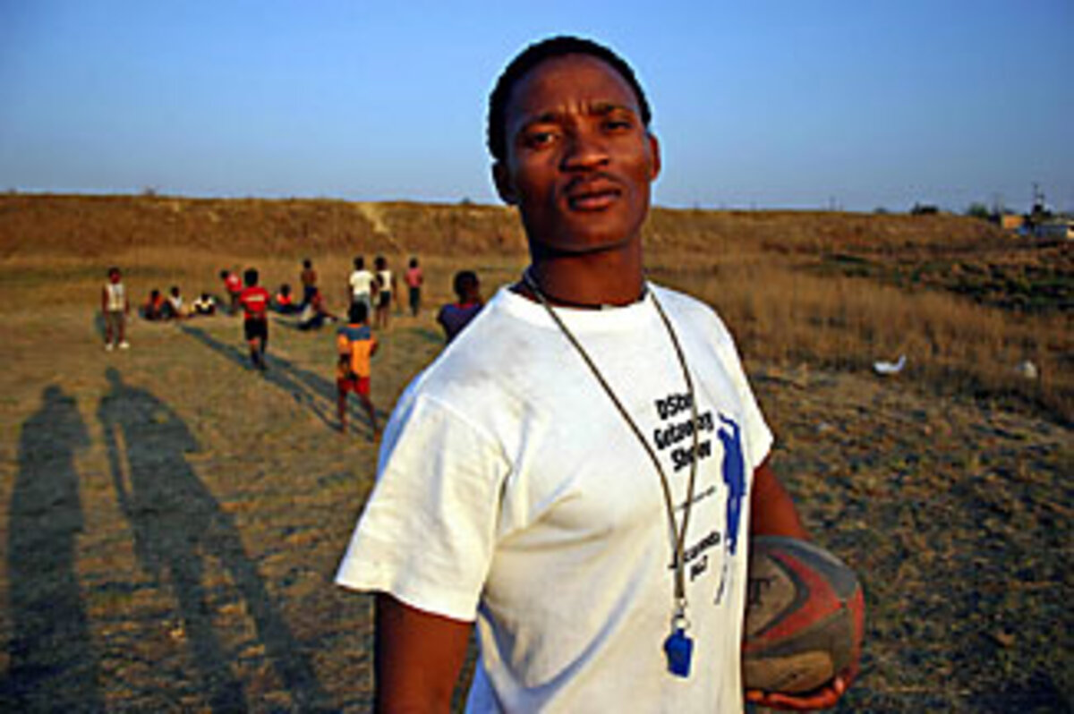 "I'm doing this because I'm tired of hearing that rugby is a white sport," says Bafana Thawuzeni, a Johannesburg fitness trainer and volunteer coach in Diepsloot. "Our country became free 14 years ago, so we should be equal. I'm doing this so that these kids have some exposure to all the sports in their country, not just the ones that blacks are supposed to be good at, like soccer."