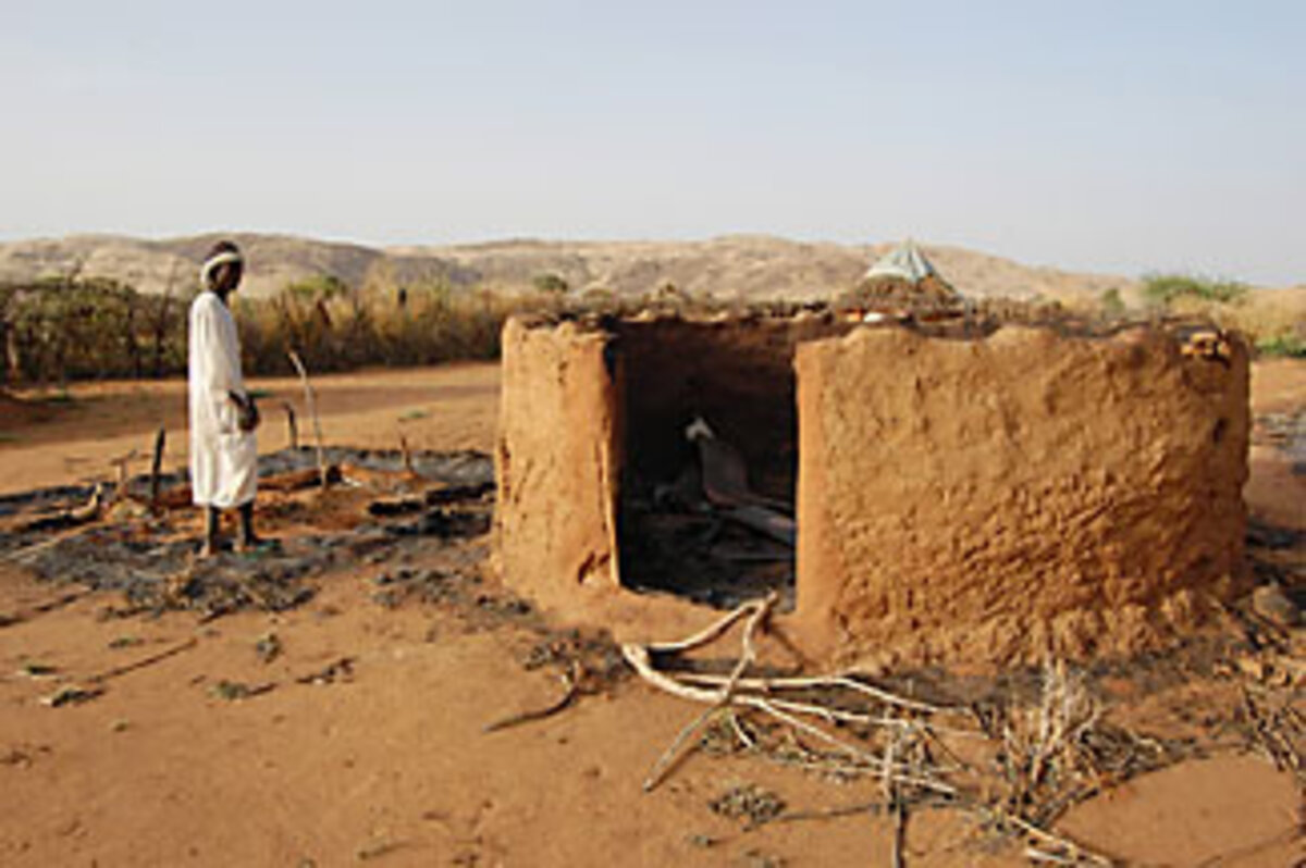 In Umlaota, ashes and a roofless mud frame are all that remain of a civilian home that was burned by government troop gunfire the same day.