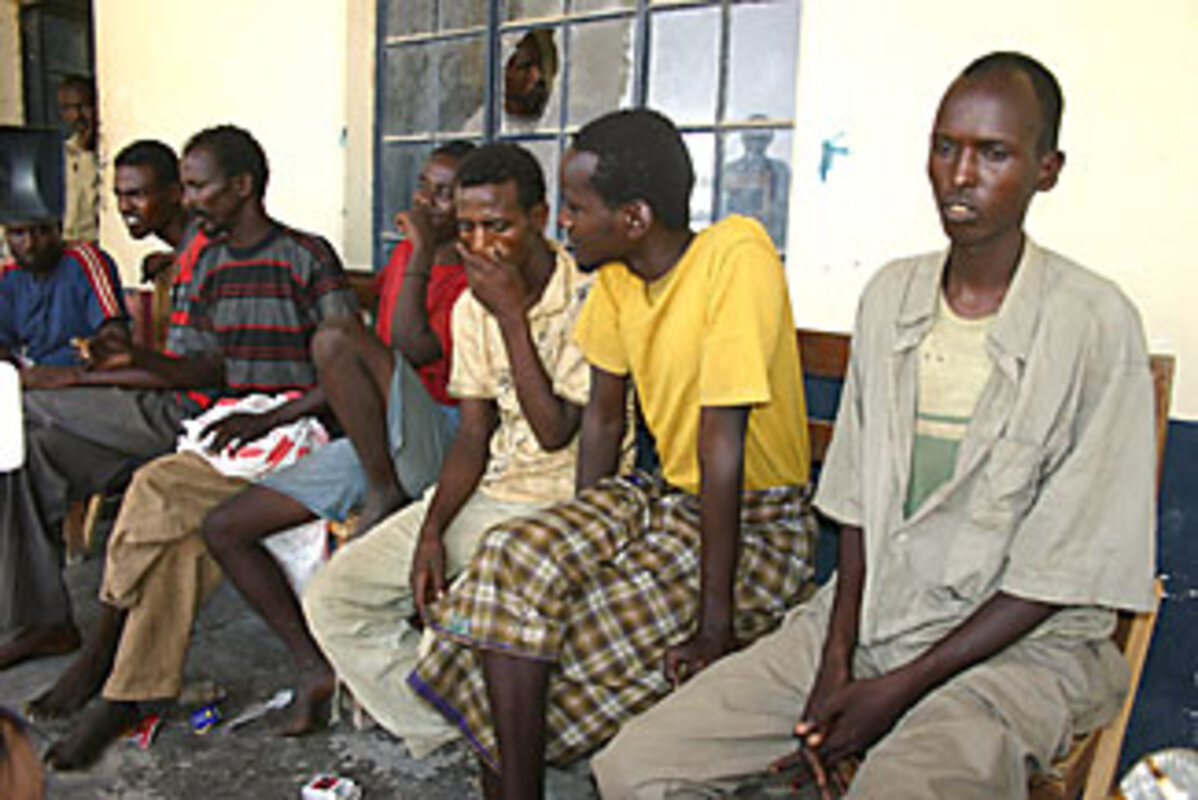 Most of the men are sullen, knowing that Somaliland has given stiff sentences to four other pirate crews captured over the past two years. But with the arrival of visitors to the jail, the tension of the past few weeks finally bursts for the youngest, a skinny 19-year-old in shorts. Breaking into giggles at the slightest provocation, he's sent away by smiling police officials to pull himself together.