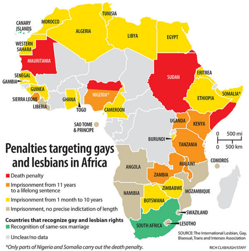 Almost all of Africa鈥檚 54 nations ban homosexuality.聽Uganda drew opprobrium from across the West last year when a bill was tabled in parliament that would have imposed the death penalty for what was termed 鈥渁ggravated homosexuality.鈥澛燭he bill has since been shelved, but being found to be gay still risks a maximum 14-year jail sentence and Amnesty International has reported arbitrary arrests and torture of suspected gay people in Uganda. 聽聽