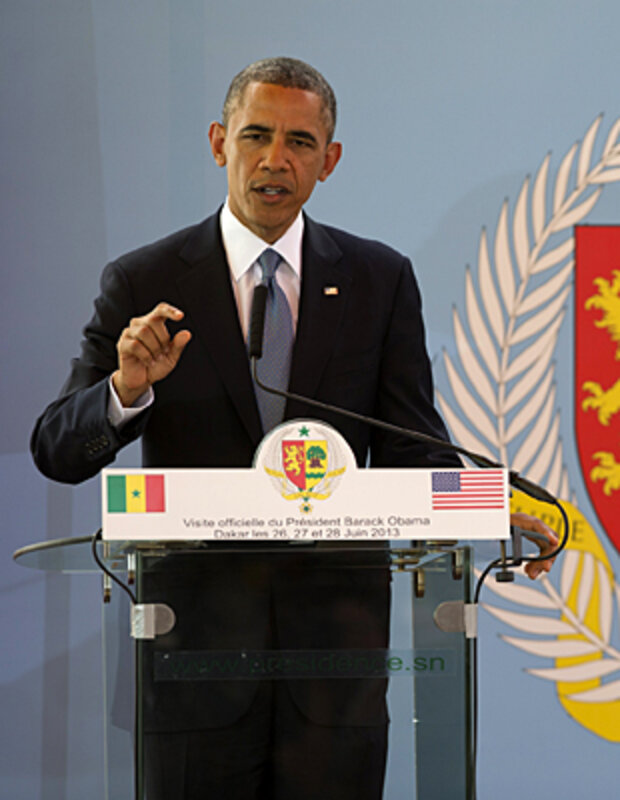 Standing in Africa today, the first black American president called the first black South African president an inspiration and a "hero."聽