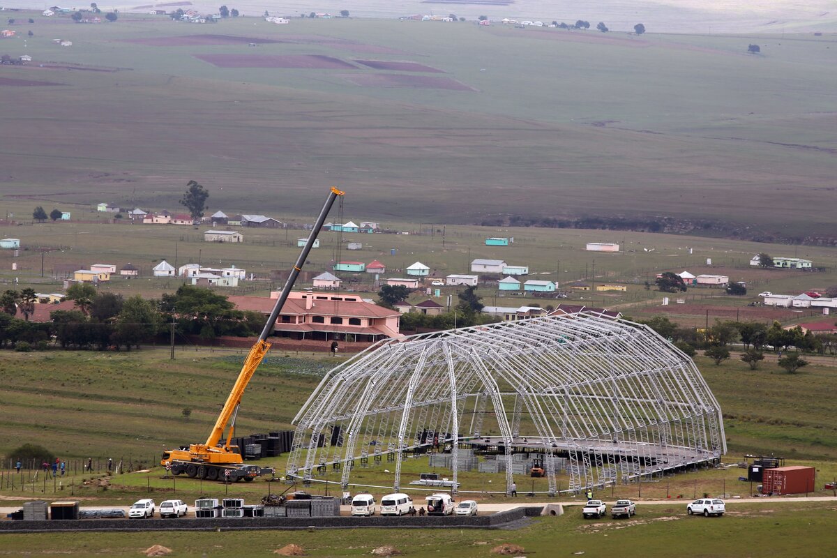 In the meadow behind Mandela鈥檚 house here 鈥 large and double-story, but still pastel pink 鈥 the skeleton of a huge marquee went up聽Monday. Roads are being cordoned off. Up on the rise where he will be buried, soldiers stood watch.聽