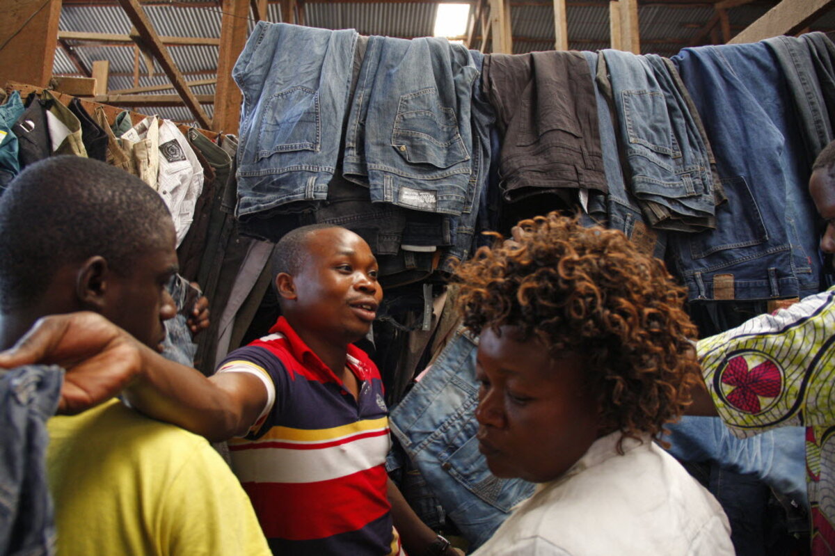 At Virunga market, you will find a maze of stalls selling everything from the infamously ubiquitous T-shirts left over from sororities鈥 charity 5ks to Steve Madden high heels. And on every street, you鈥檒l find a hawker selling a couple dozen pants, shirts, and jackets hanging from a nearby corrugated metal wall.