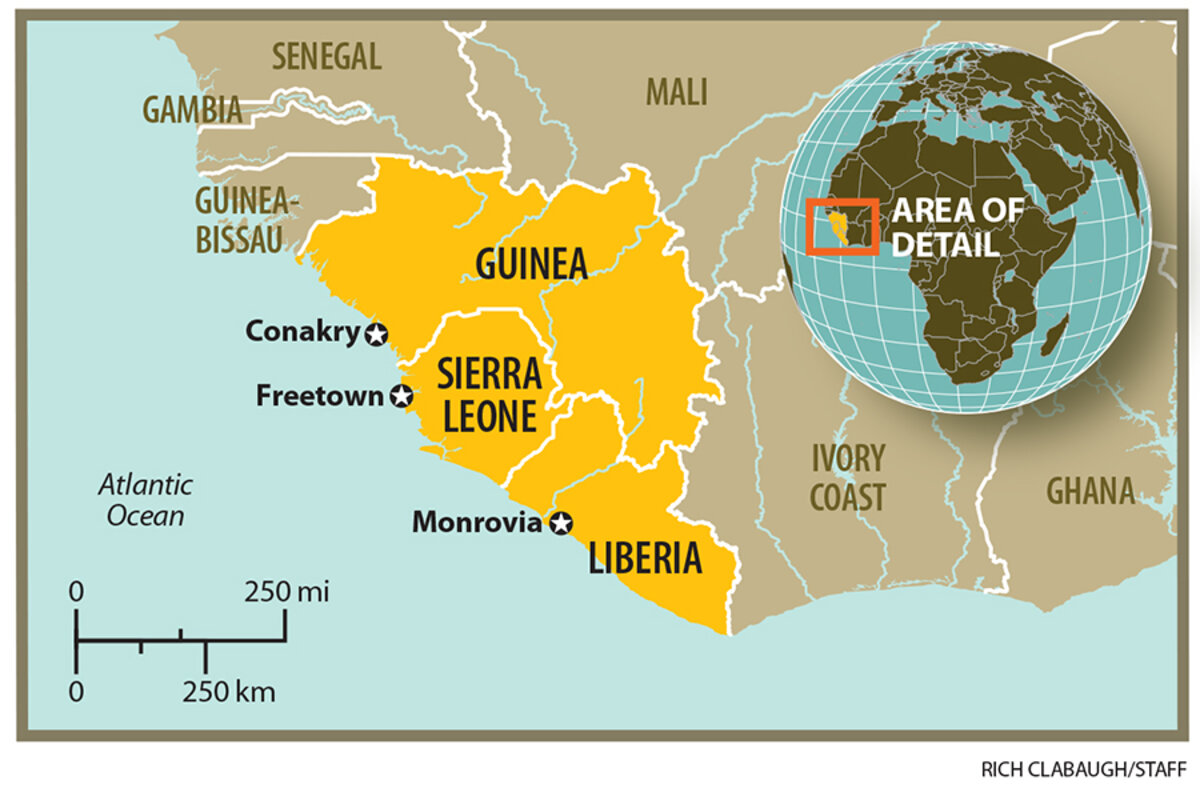 The聽Ebola聽outbreak that charged across West Africa last year is thought to have begun in a village in southern Guinea in December 2013. From there, it quickly hopped borders, showing up in Liberia in March 2014 and Sierra Leone in May, before spreading outward to Senegal, Nigeria, and even the United States.