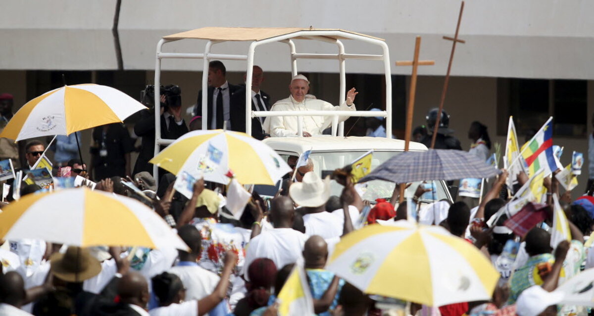 The pope's visit immediately ushered in a greater sense of freedom to the beleaguered area. In what had been a no-man's land separating the Muslim enclave from the rest of the city only the day before, thousands crossed over into the area chanting "war is over" in the local Sango language after the pope's departure. Some followed the pope's entourage all the way to the sports stadium where he said a final Mass before heading to the airport for his flight back to Italy.