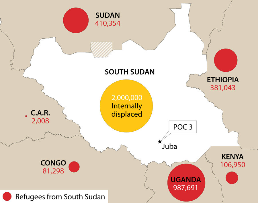Displacement is a global crisis, but in few countries is it so existential as in the world鈥檚 newest nation. South Sudan was born in July 2011, cleaved off from Sudan, then Africa鈥檚 largest country, after decades of war. The conflict had left it with few schools, roads, or functional health centers. Then, just two years later, the infant nation turned on itself as factions loyal to the two political rivals tried to vanquish the other. The war that began in Juba radiated across the country.