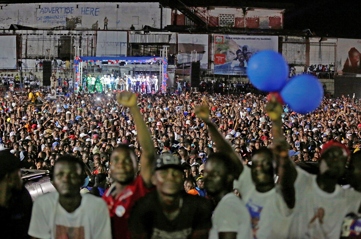 On a recent afternoon in the run-up to Liberia’s Oct. 10 presidential election, supporters of the country’s ruling Unity Party spilled out onto the streets outside its low-slung green headquarters, their fists full of party handouts. Somewhere deep in the crowd, someone had strapped a giant speaker to the back of a pickup truck, and cranked the volume up to full.