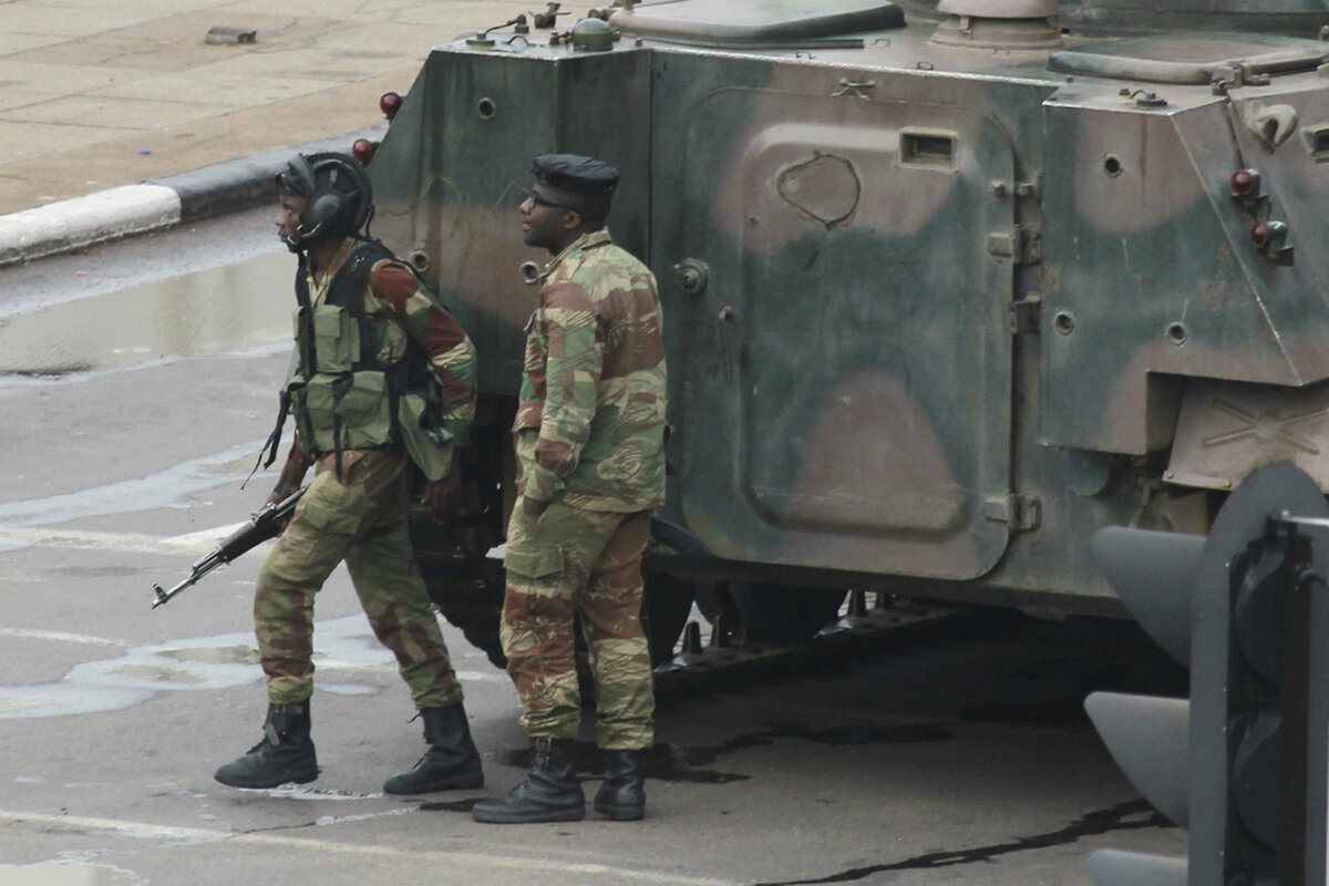 Armed soldiers in armored personnel carriers stationed themselves at key points in Harare, while Zimbabweans formed long lines at banks in order to draw the limited cash available, a routine chore in the country's ongoing financial crisis. People looked at their phones to read about the army takeover and others went to work or to shops.