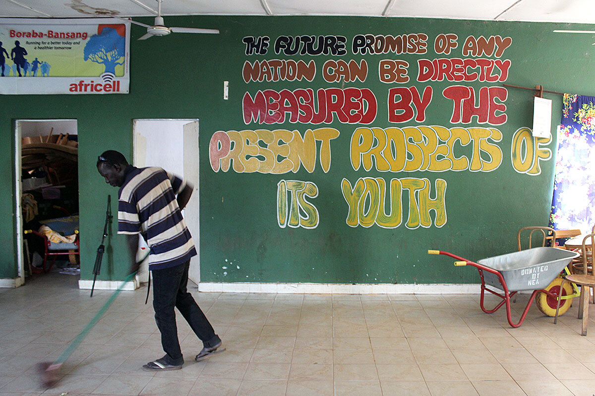 In 2017, money and expertise from YEP helped Jammeh expand his activities to include training courses for聽dozens of people working in the small tourist lodges that dot the riverbank. In the next town over, in a community center painted with cheery slogans about youth empowerment, YEP offers聽three-month courses in the installation of satellite dishes and solar panels.