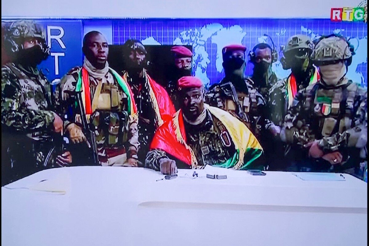 鈥淲e will no longer entrust politics to one man. We will entrust it to the people,鈥 he said, draped in a Guinean flag with about a half dozen other soldiers flanked at his side.