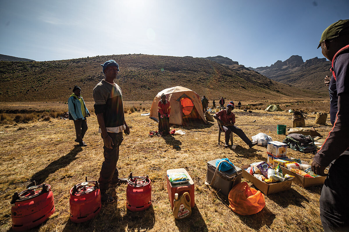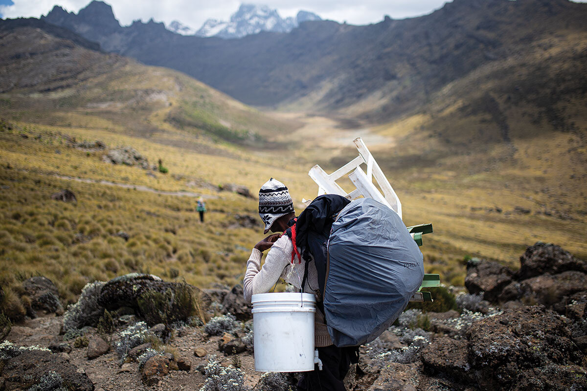 On Mount Kenya, Africa鈥檚 second-highest mountain after Kilimanjaro, porters make expeditions not only聽possible, but downright comfortable. They set up and take down tents, haul clients鈥 gear, and cook three full meals each day 鈥 all accomplished before their guests even step foot into camp.
